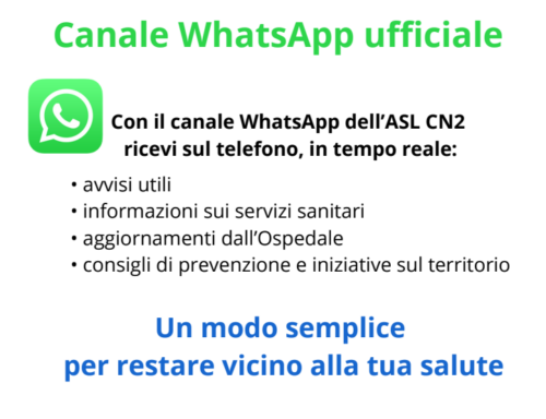 L’ASL CN2 ha attivato il nuovo canale WhatsApp istituzionale: uno strumento di comunicazione pensato per offrire ai cittadini un accesso diretto, semplice e immediato alle informazioni sanitarie di interesse pubblico.