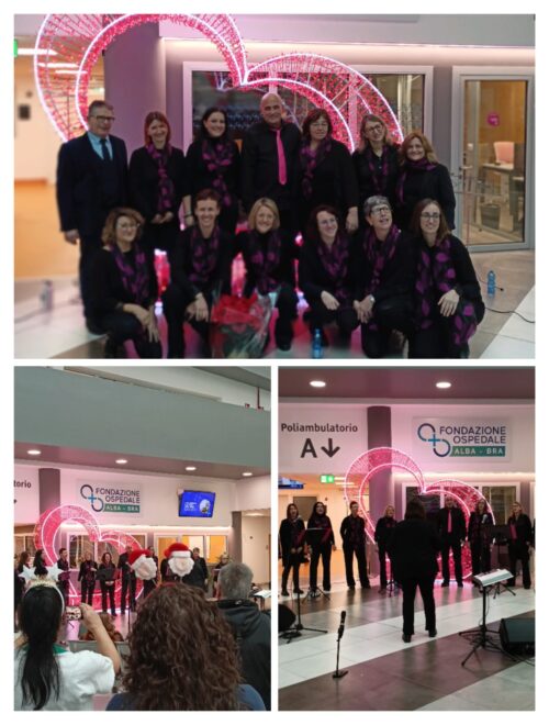 Mercoledì 24 dicembre. il concerto, aperto al pubblico e gratuito, della corale “I Mulini a Vento” di Benevello è stato il regalo fatto dalla corale all’ospedale di Verduno e ai suoi pazienti.