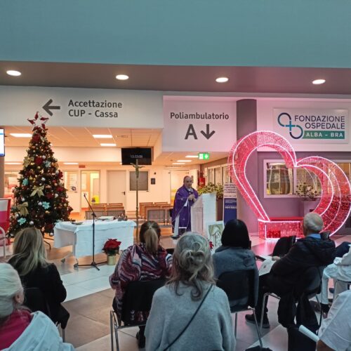 Celebrazione della Santa Messa di Natale, presieduta da Monsignor Marco Brunetti, Vescovo di Alba e trasmessa in tutte le stanze di degenza.