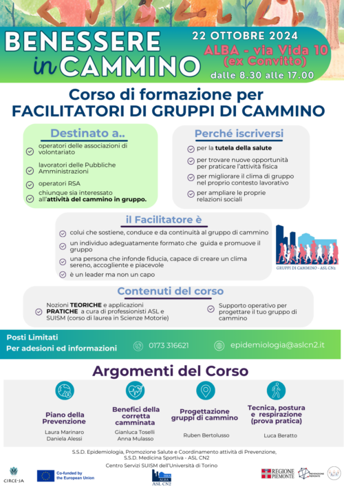 L’evento, ideato in collaborazione con la S.S.D. Medicina Sportiva dell’ASL CN2 e Centro Servizi SUISM dell’Università di Torino, si svolgerà martedì 22 Ottobre 2024 ad Alba, in Via Vida n. 10 (ex Convitto) presso l’aula multimediale dalle ore 8.30 alle 17.00.