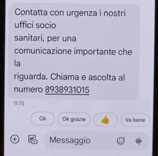 Notizie 06/09/2024Attenzione alle truffe! Sono stati segnalati all’ASL CN2 alcuni messaggi ricevuti dai cittadini in cui si chiede di chiamare con urgenza il numero a tariffazione elevata 8938931015, sostenendo … Leggi tutto Esempio di messaggio