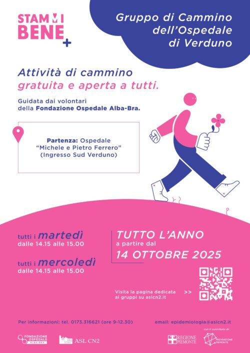 NotiziePromozione SaluteSostenibilità ambientaleWelfare e WHP 08/10/2025Stammi Bene – Il gruppo di Cammino dell’Ospedale Nasce il Gruppo di Cammino dell’Ospedale Ferrero di Verduno! 🚶 Un invito aperto a tutti – dipendenti, volontari, pazienti e familiari – per scoprire il … Leggi tutto