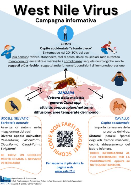 Nel 2014 il West Nile virus (WNV) ha fatto la sua prima comparsa in Piemonte (nel 2015 è stato segnalato il primo caso umano); negli anni successivi, gli approfondimenti diagnostici e la sorveglianza entomologica sui vettori hanno confermato la circolazione virale nella totalità del territorio, che è stato inserito, tramite dispositivi del Ministero, tra le aree ad alto rischio di trasmissione. Solamente in Piemonte, nel periodo 2022-2023 sono stati segnalati più di 110 casi totali. Va ricordato che l’incidenza della malattia varia in base alla stagione, per via del naturale ciclo riproduttivo del vettore e dei flussi migratori degli uccelli.